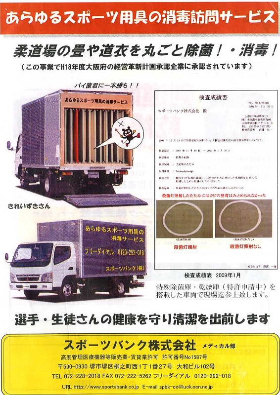 〓特殊除菌車乾燥車。実用新案登録第3171723号〓 畳をキレイに除菌・乾燥して、練習に集中出来る環境こそ新スポーツ活動。