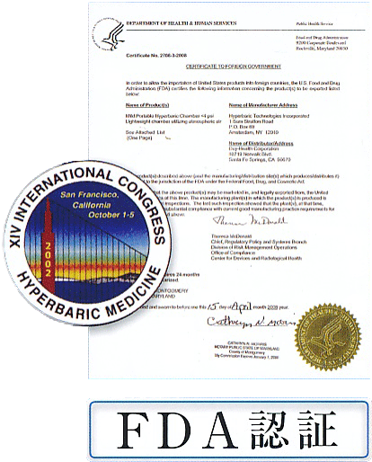 FDA(米国食品医薬局) The International Hperbaric Assosiation(国際気圧協会)が認める安全性・